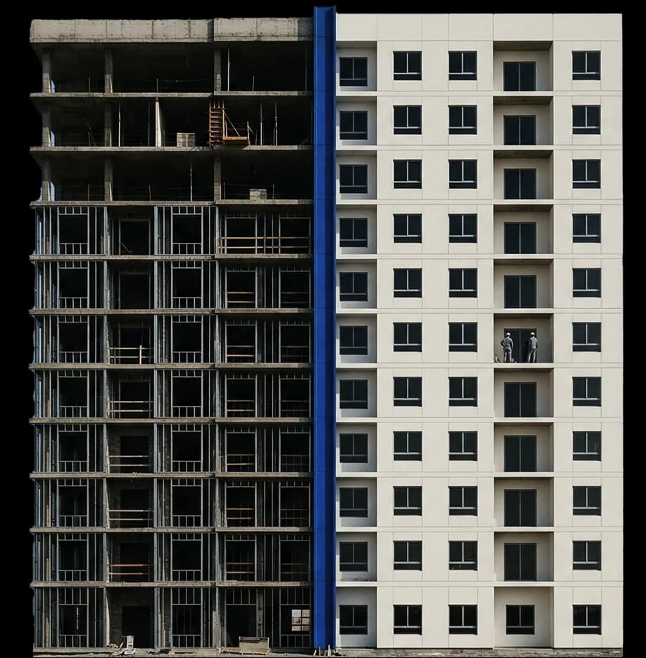 Dry plastering is a modern way of covering walls that guarantees a perfectly smooth surface ready for further finishing. Faster and cleaner than traditional plastering.